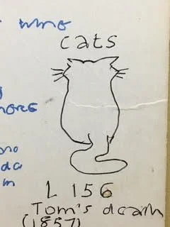 Covers of Penelope Fitzgerald’s writing notebooks , The beginning of The Beginning of Spring, A cat drawing
